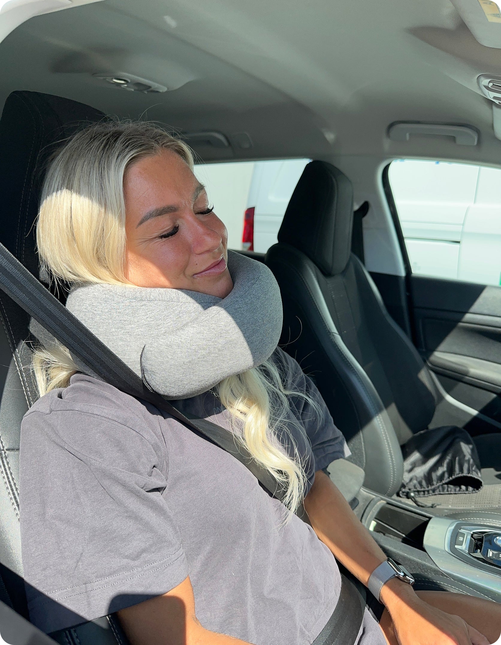 Cozy Pillow Ergo er lavet af genanvendeligt materiale med hukommelsesskum, der tilpasser sig din nakke og dit hoved for komfort og støtte under ture. Materialet er også åndbart og holder dig kølig og velplejet.
