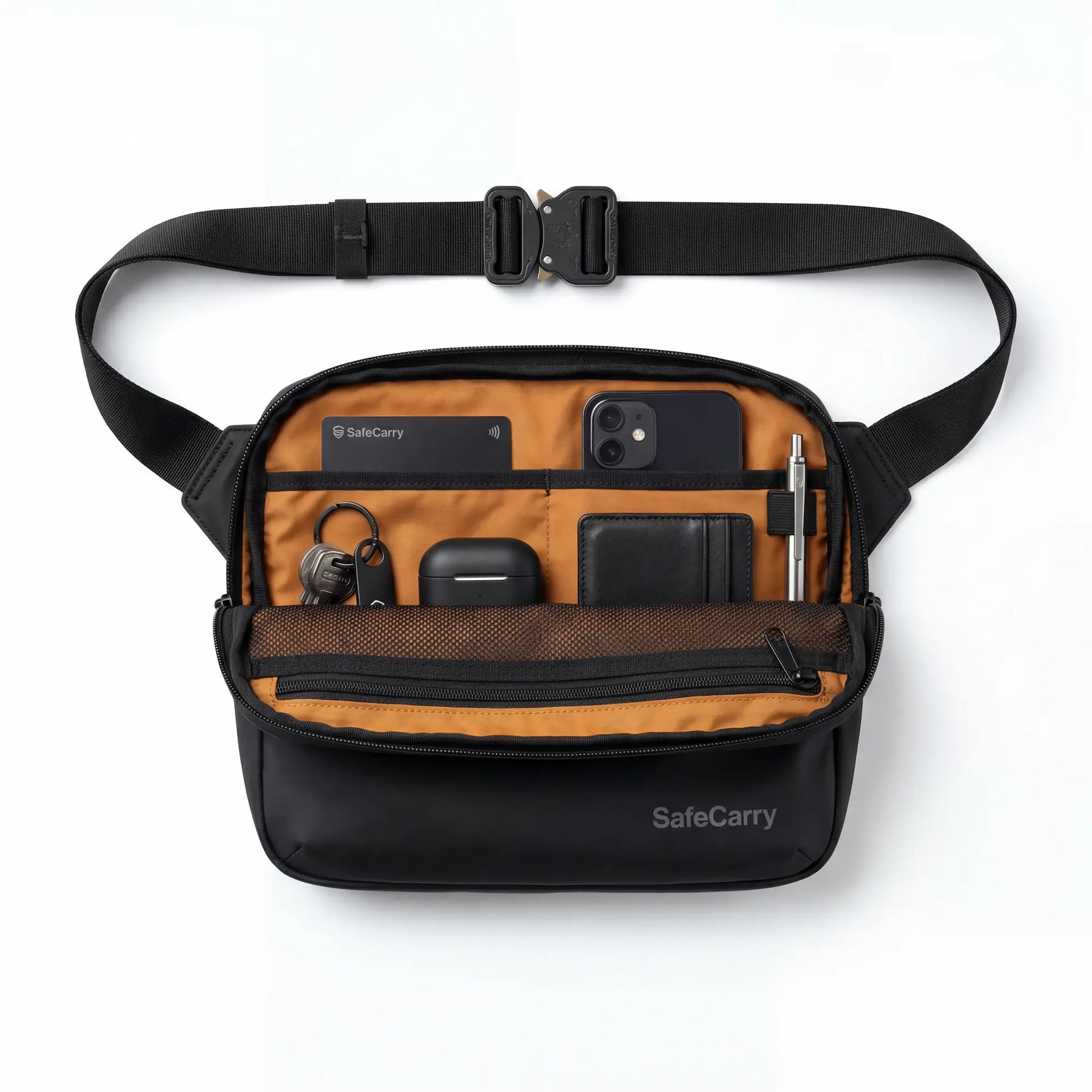 Hos SafeCarry arbejder vi hele tiden på at optimere Sleekbag, så du får en taske der både er mere sikker, mere holdbar og mere praktisk i hverdagen. Vi har fuld RFID-beskyttelse i alle rum, stærke sorte lynlåse, et forbedret vandafvisende materiale og et inderfor, der er gjort ekstra slidstærkt.