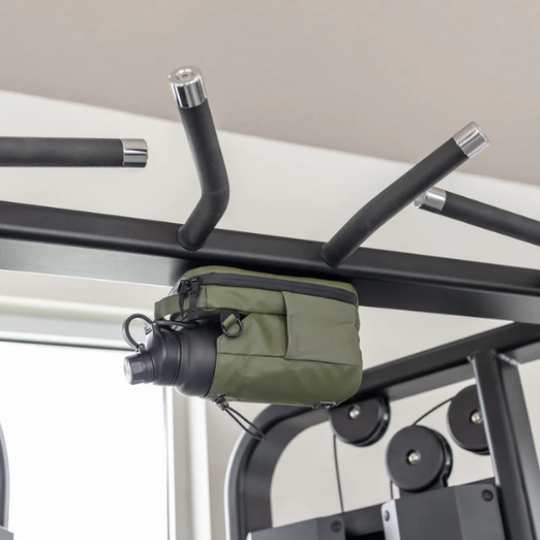 Den kraftige magnet gør det muligt at fastgøre tasken direkte på træningsmaskiner, stativer, skabe og vægtstænger. Den er så stærk, at den endda kan bære flasker på op til 1,3 liter. Til hurtig brug har tasken udvendige sidelommer, der gør det nemt at skifte musik, filme træningen eller tjekke beskeder uden stop.